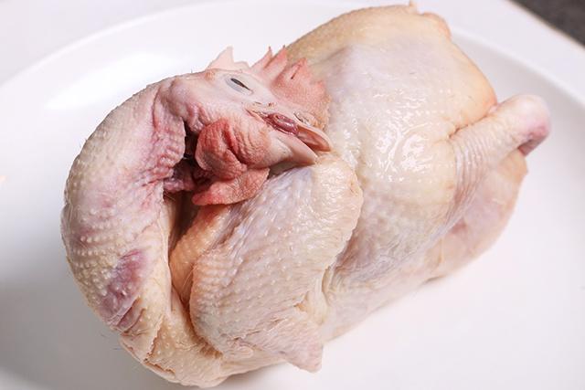 取老鸡一只,宰杀洗净剥皮备用